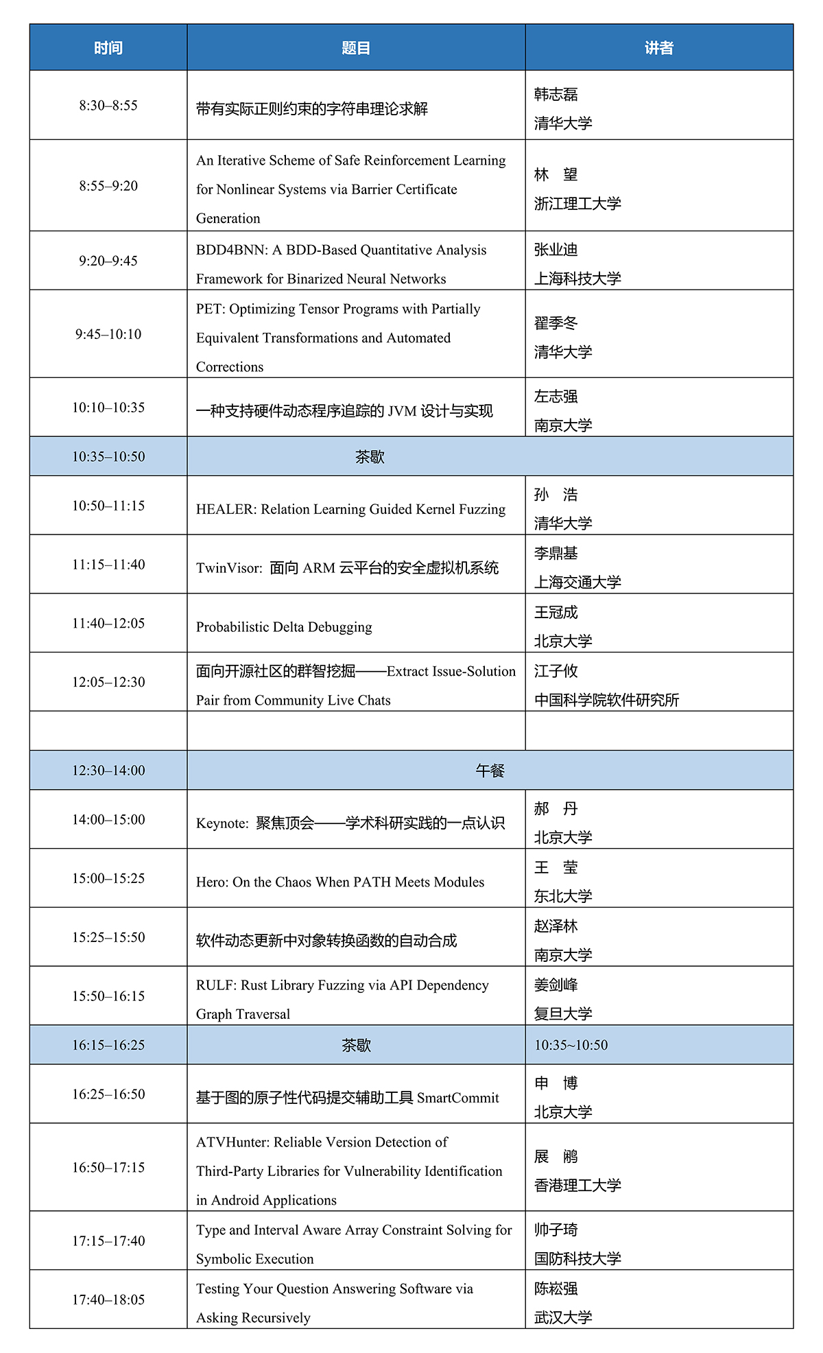 TSE, ACM TOSEM, CAV, ICSE, ISSTA, S&P等。